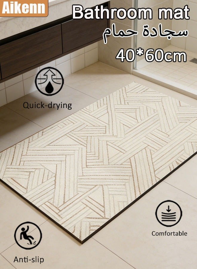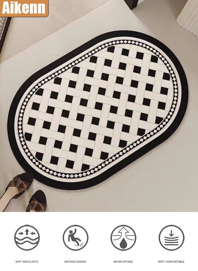 سجادة حمام، سجادة حمام فائقة النعومة، سجاد حمام سميك للغاية وماص، سجادة حمام ناعمة غير قابلة للانزلاق من طين الدياتوم، سجادة حمام ماصة وقابلة للغسل وغير قابلة للانزلاق، سجاد حمام للحمام (منقوش باللونين الأسود والأبيض)