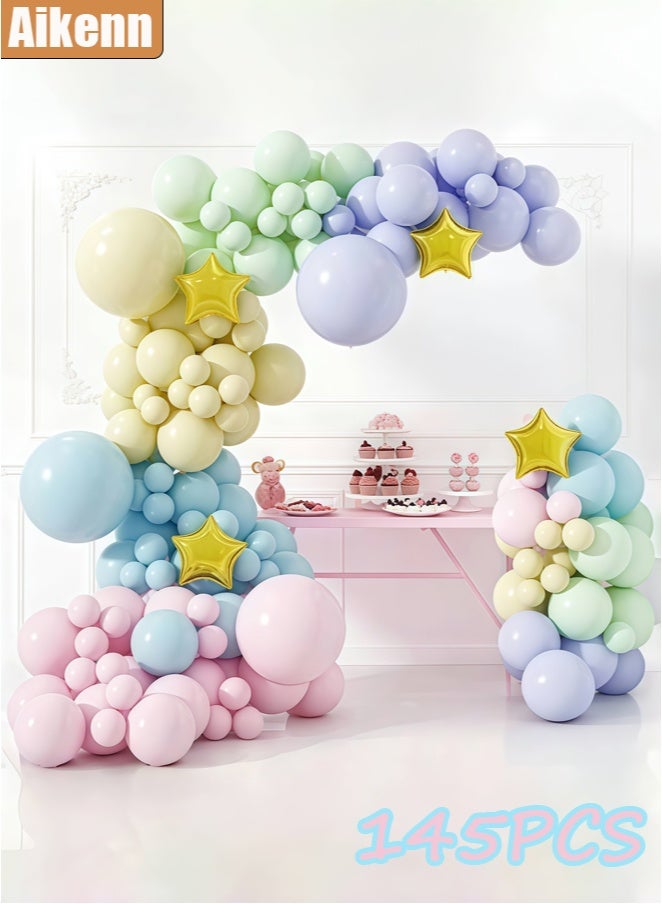 زينة اليوم الوطنيمجموعة بالونات، 143 بالونة بألوان متنوعة، بالونات لاتكس قوس قزح، بالونات حفلات بألوان زاهية، مجموعة إكليل بالونات بمقاسات مختلفة 5/10/12/18 بوصة، لحفلات الزفاف وحفلات استقبال المولود وحفلات أعياد الميلاد (145 قطعة)
