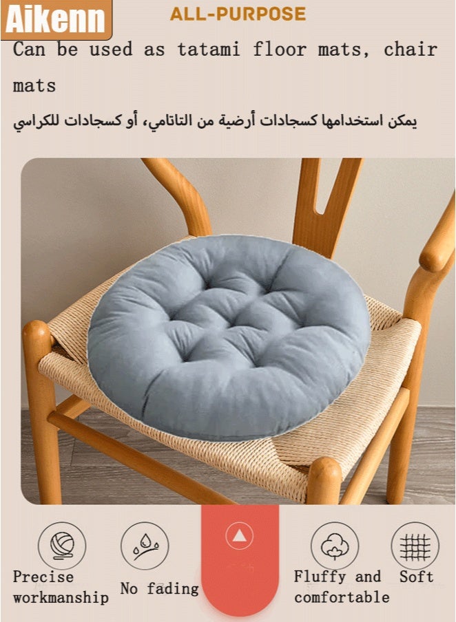 وسادة كرسي أريكة 40 سم، وسائد كرسي، وسادة مقعد دائرية مع أربطة، وسائد أريكة، وسادة أرضية للتأمل، وسادة تاتامي سميكة، وسائد كرسي أريكة، وسادة مقعد سيارة للمكتب وغرفة المعيشة والأريكة والشرفة واليوغا (رمادي فاتح)
