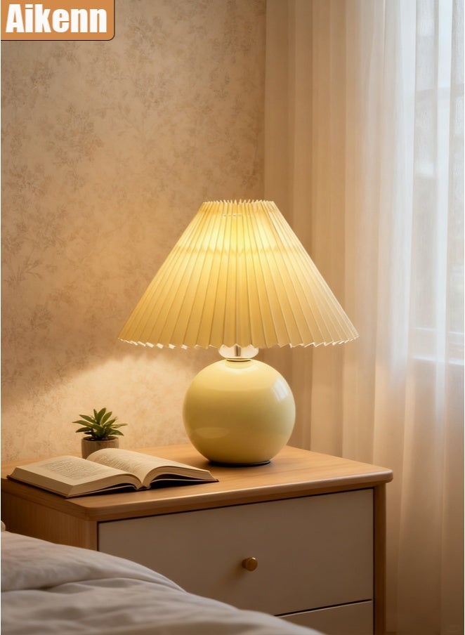 مصباح طاولة صغير، طاولة بجانب السرير، مصباح صغير لغرفة النوم وغرفة المعيشة، طاولة جانبية، مساحات صغيرة، مصباح عتيق مطوي، مصباح LED جمالي، 3 خيارات إضاءة قابلة للتعديل، قاعدة سيراميك