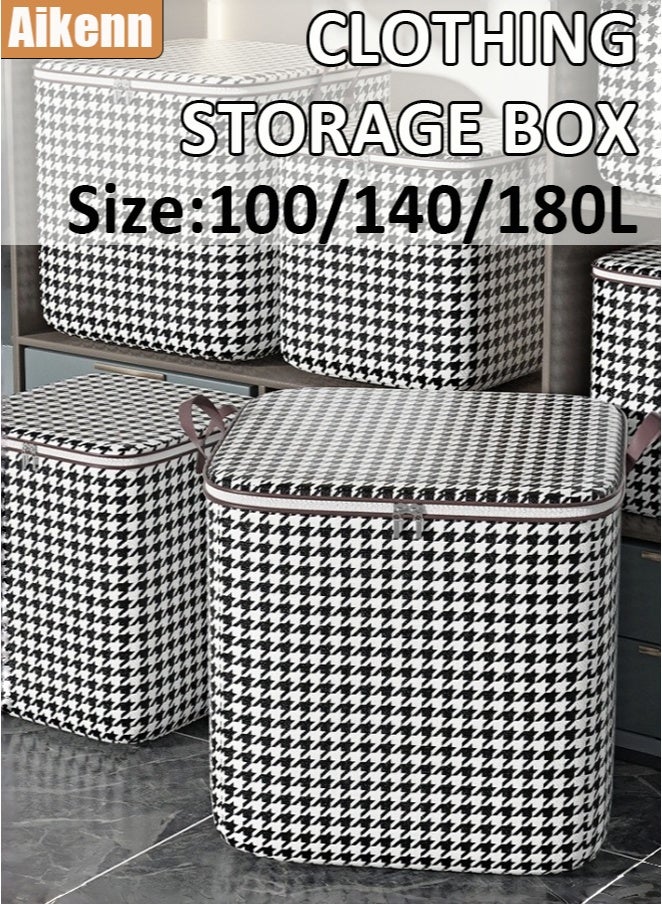 صناديق تخزين ملابس سعة 100/140/180 لترًا مع أغطية، وحقائب تخزين قابلة للطي بسحابات، ومقابض معززة، وخزانة وتنظيم للملابس والسترات واللحاف والفراش