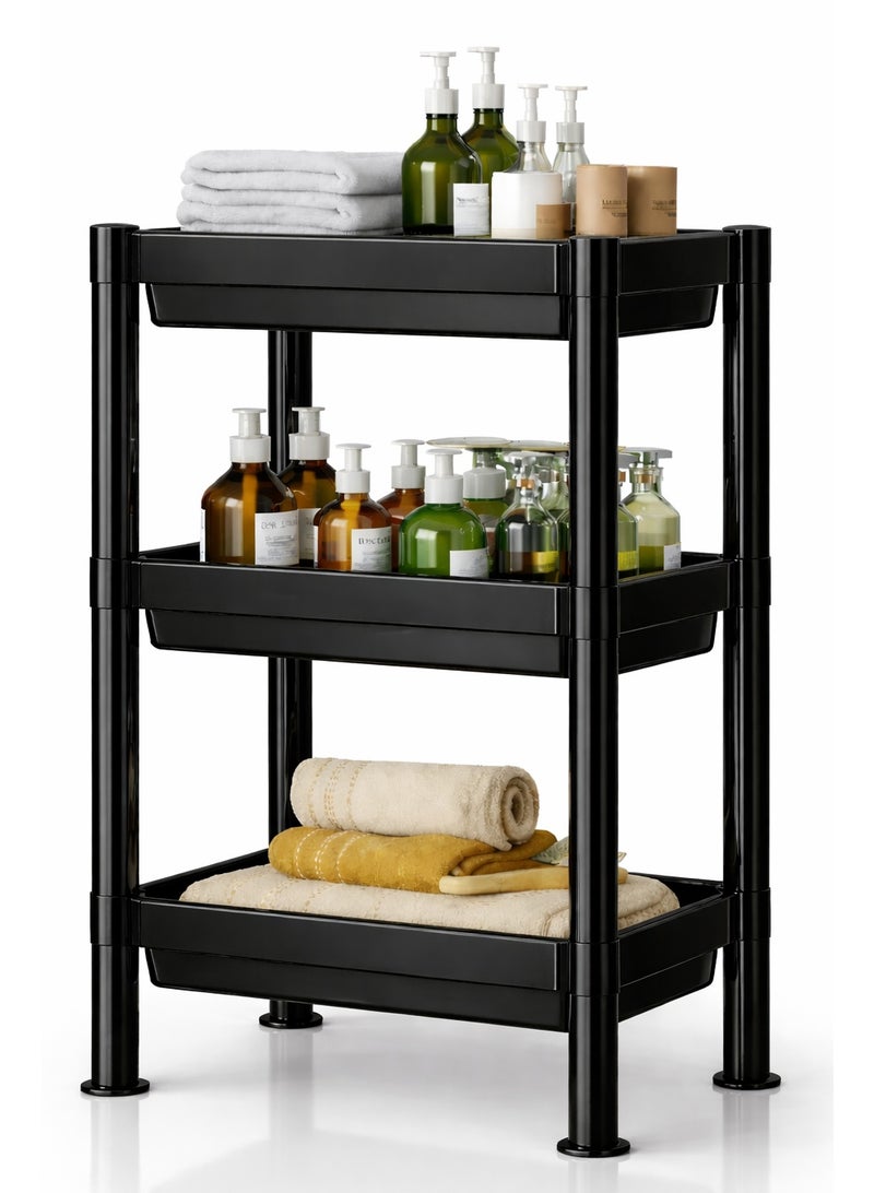 منظم وسلة حمام أسود 3 رف لتنظيم الحمام