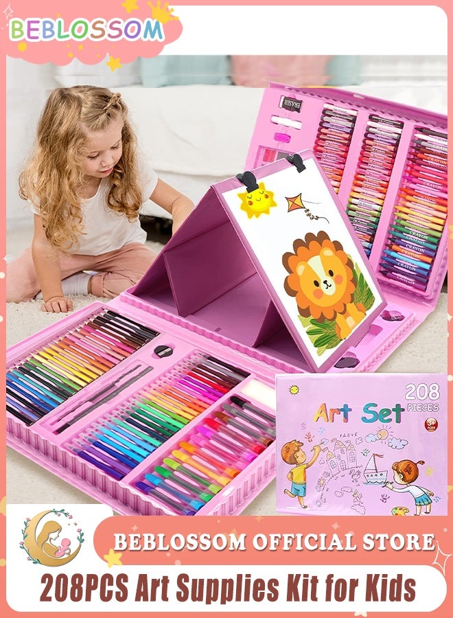 مجموعة أدوات فنية مكونة من 208 قطعة للأطفال، مجموعة رسم محمولة مع حامل رسم مزدوج الجوانب، وألوان باستيل زيتية، وألوان مائية، وأقلام تلوين، وحقيبة تخزين، هدية مثالية للأولاد والبنات والمبتدئين.