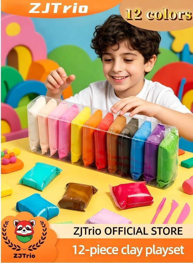 صلصال يجف بالهواء، بلاستيك 12 لون، مجموعة صلصال تشكيل مع 3 ادوات نحت، بلاستيك يمكنك تركيبه بنفسك لتعليم الاطفال