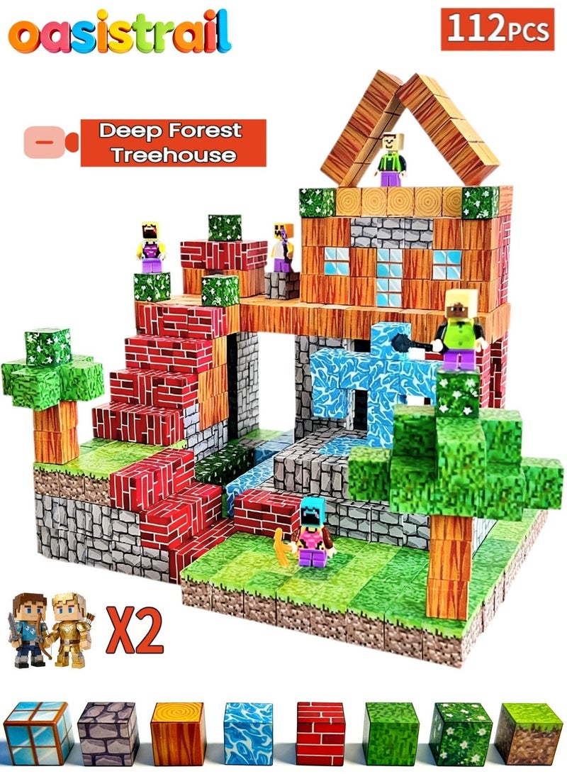 الكتل العاب العاب المغناطيسية بناء مكعبات مكعبات اطفال كبيره 112PCS عالية القوة الألغام المغناطيس العالم مجموعة للأطفال, مغناطيس كتل مكعبات للفتيان والبنات, لعبة البناء يجب أن يكون لديك لصفوف رياض الأطفالSTEM مونتيسوري الحسية ألعاب تكديس لعبة ل 3 4 5 6 7 8 9 10 11 12 عيد الميلاد هدية عيد الميلاد (موضوع الغابات؛ يشمل 2 تماثيل لعبة.)