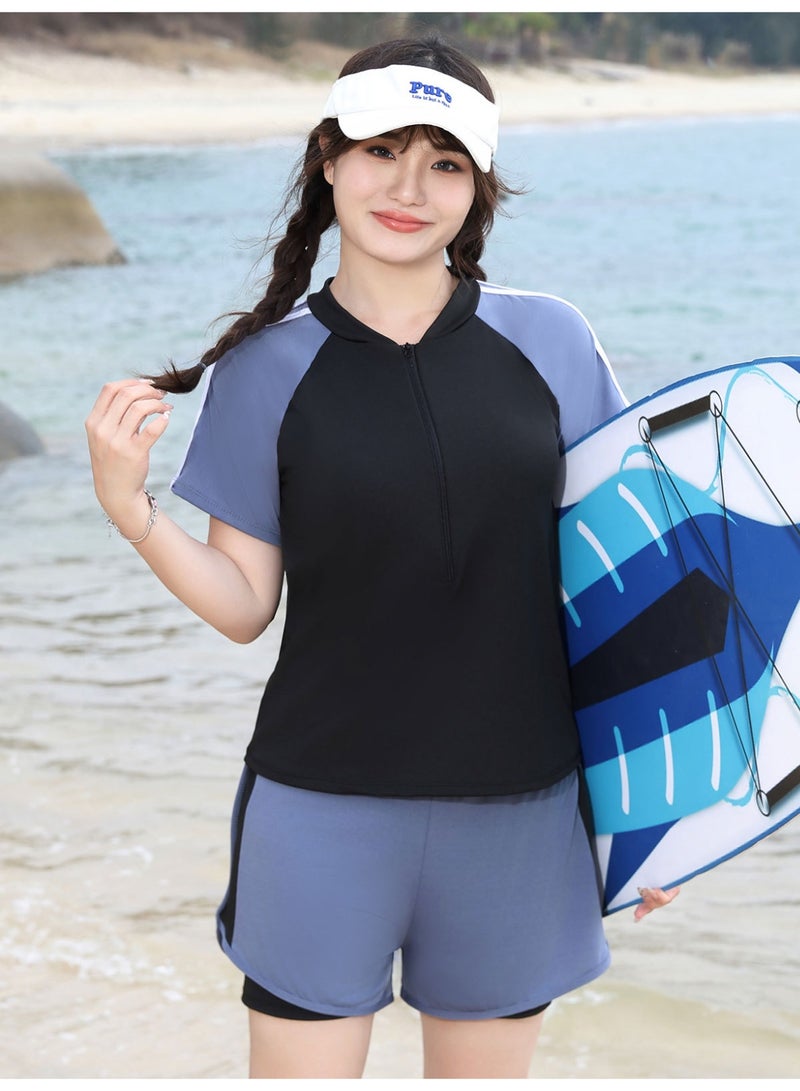 طقم سباحة نسائي ثلاثي القطع - يشمل ملابس السباحة، تنورة السباحة وسروال السباحة، حماية من أشعة UV، تصميم أنيق للتحكم بالبطن، مثالي للتزلج والسباحة