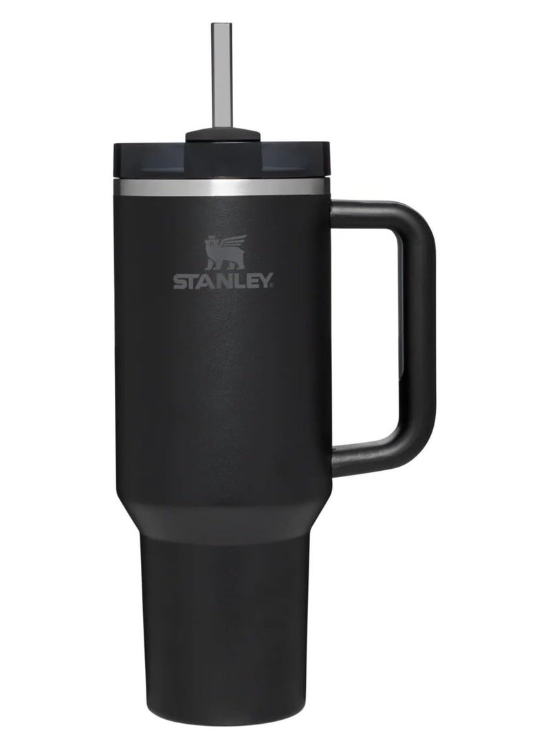 كوب حراري 40 أونصة ستانلس ستيل مع مقبض وشفاط، معزول بتقنية الفراغ مانع للتسرب، كوب سفر للماء والقهوة والمشروبات الباردة (أسود)