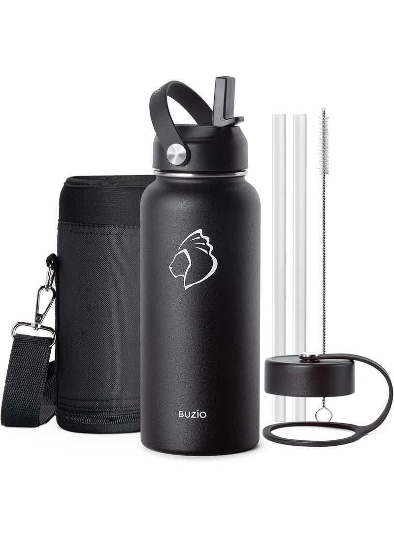 زجاجة ماء 32 أونصة بقشة وغطاء شرب سريع - معزولة حراريًا من الفولاذ المقاوم للصدأ، خالية من التسرب ومادة BPA، قابلة لإعادة الاستخدام للرياضة والسفر