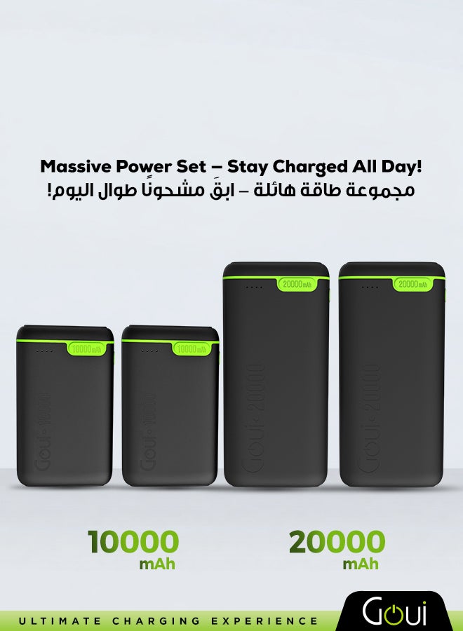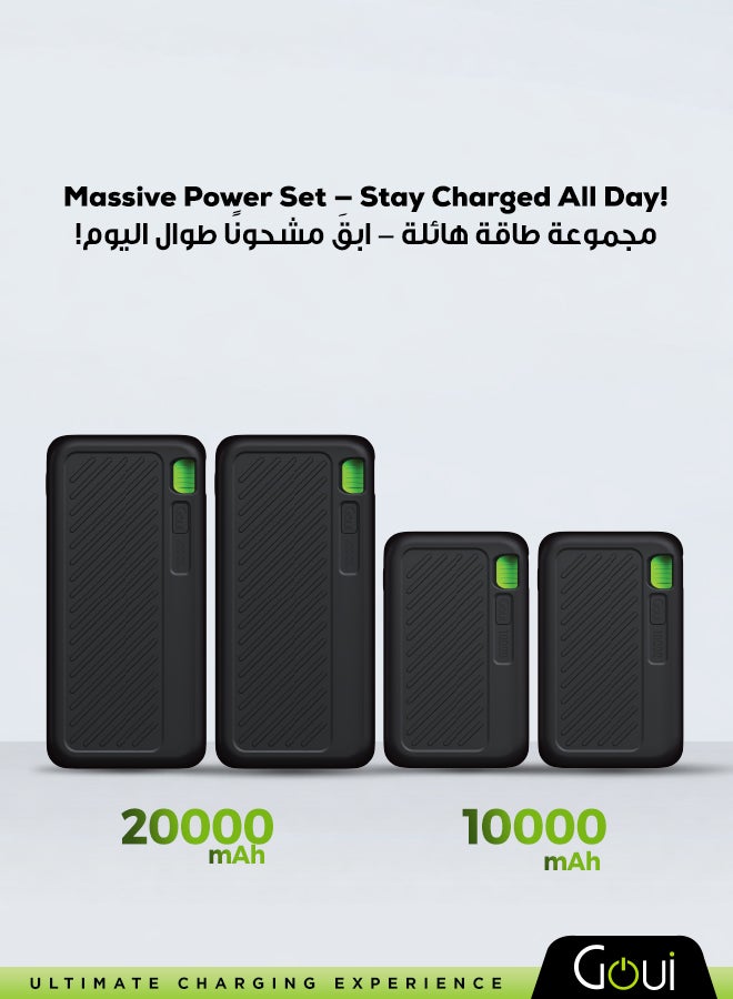 مجموعة باور بانك سينقي (عدد 2 بسعة 20,000 ملي أمبير + عدد 2 بسعة 10,000 ملي أمبير) | شواحن متنقلة عالية السعة | ثلاثي المخارج (منفذان Type-C + منفذ USB-A) | تصميم مدمج و صغير الحجم يدعم الشحن المتزامن للهواتف الذكية والأجهزة اللوحية وأجهزة الألعاب وسماعات البلوتوث والمزيد | تصميم مناسب للسفر لتوفير الطاقة أثناء التنقل