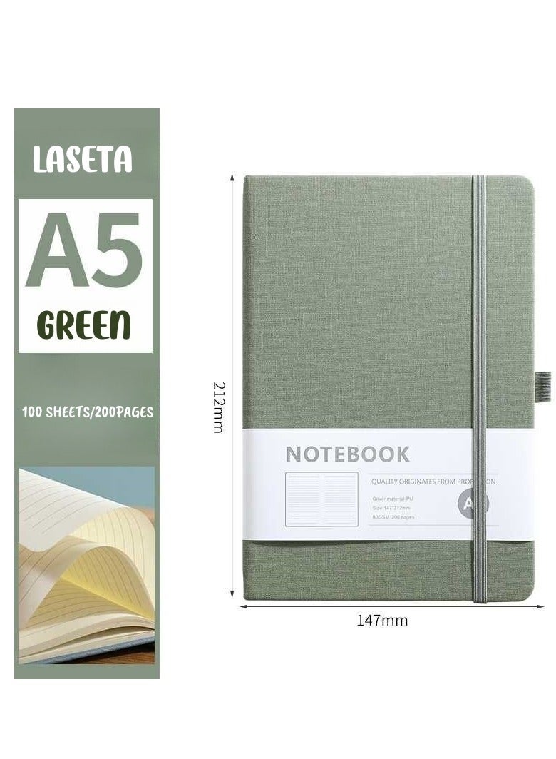 دفتر ملاحظات مضغوط ذو غلاف صلب A5، 192 صفحة، أخضر