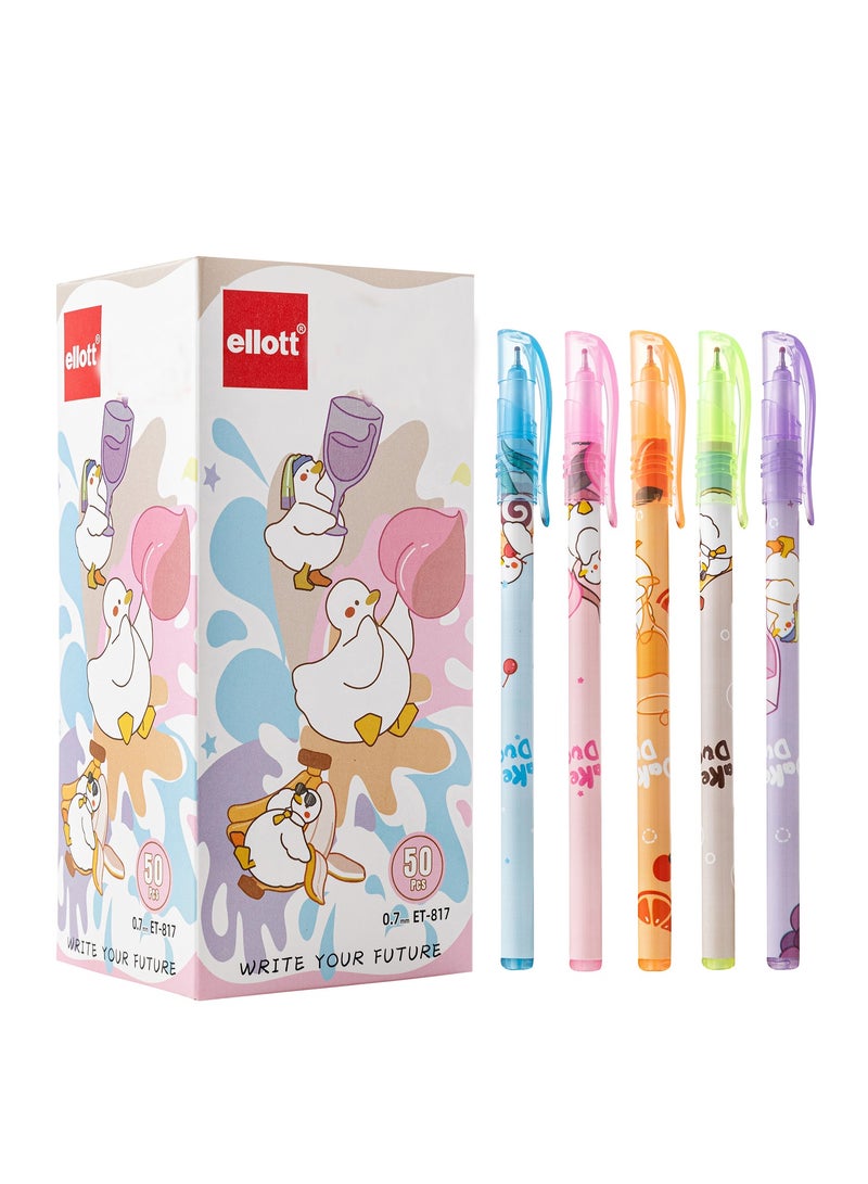 أقلام حبر جاف فاخرة، 50 قلمًا - أقلام برأس فضي نيكل، 0.7 مم، أقلام حبر جاف كرتونية متعددة الألوان (حبر أزرق)