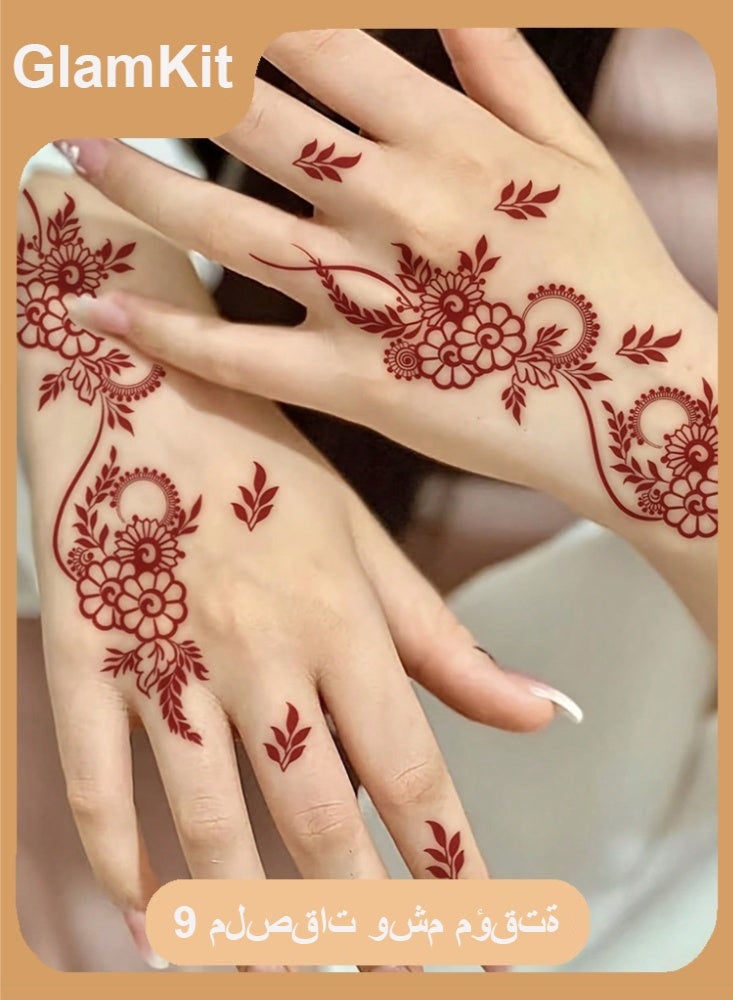 ملصقات حناء مؤقتة شبه دائمة مقاومة للماء مكونة من 9 قطع