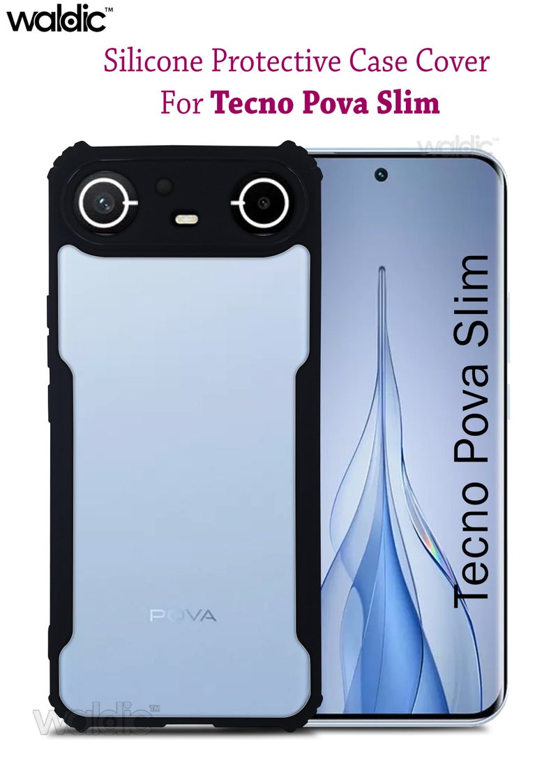 جراب Tecno Pova Slim الفاخر | غطاء سيليكون فاخر مصمم لهاتف Tecno Pova Slim | جراب Tecno Pova Slim من الأكريليك الشفاف الكريستالي، حماية 360 درجة، مصنوع من مادة TPU+PC، جراب خلفي لهاتف Tecno Pova Slim - شفاف/أسود