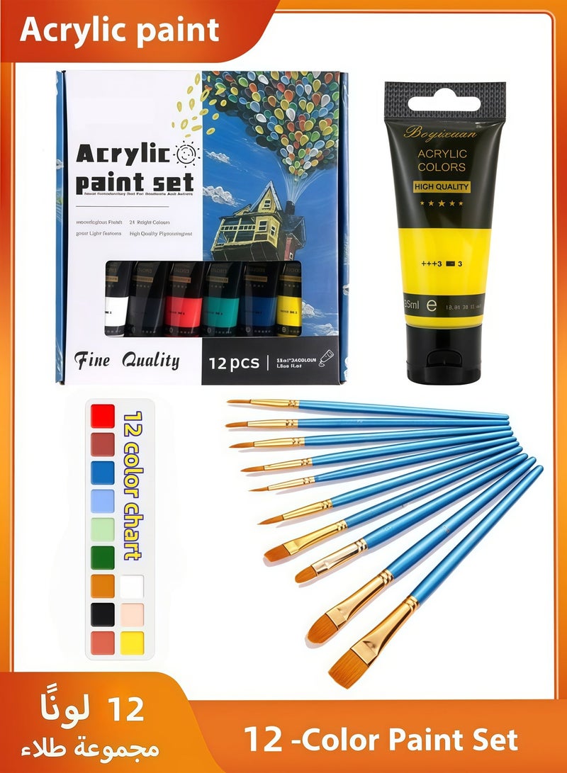 Professional acrylic paint set, 12 basic colors (35 ml/1.18 oz) in tubes, suitable for canvas, rocks, stone, wood, fabric and other materials. Art supplies.