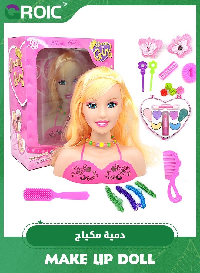 17 PCS Doll Head for Hair Styling and Make Up for Little Girls, Small Styling Head Doll with Hair Accessories for Girls Makeup Practice, Makeup Doll Head for Hair Styling Kids Toy Kit