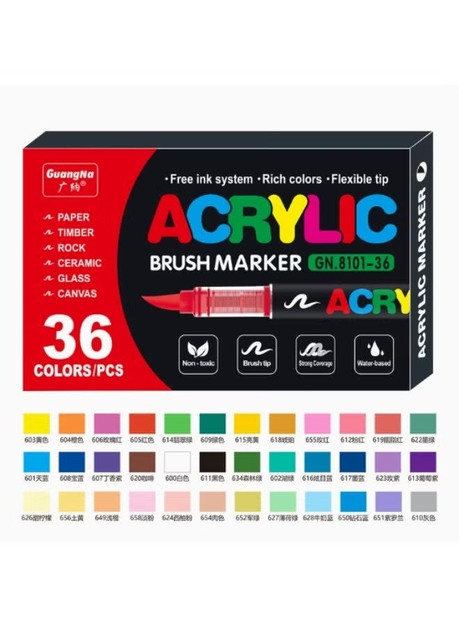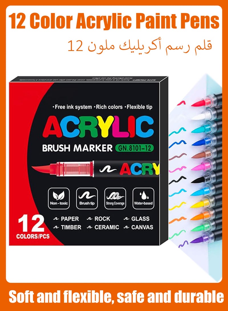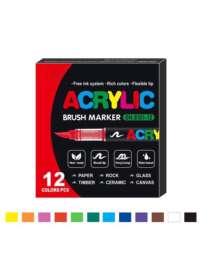 GuangNa 12-color acrylic paint markers, soft-bristle acrylic paint markers, quick-drying and waterproof acrylic markers, suitable for canvas, rock painting, wood, stone, glass, ceramics, fabric painting, and DIY crafts.