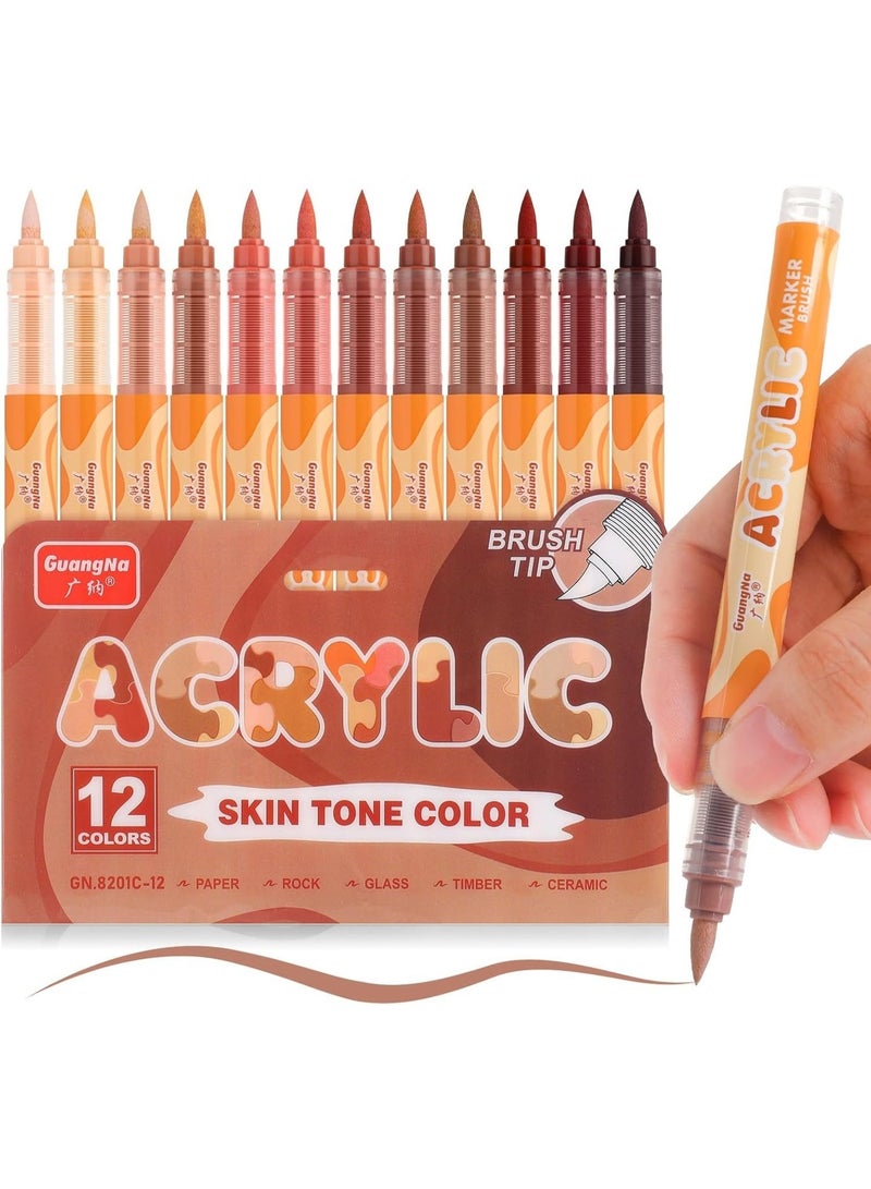Guangna acrylic paint marker pen 12 colors, skin tone series set, equipped with soft brush head, water-based, fine tip marker pen, suitable for wood, canvas, rock painting, glass, DIY handicrafts, cloth painting