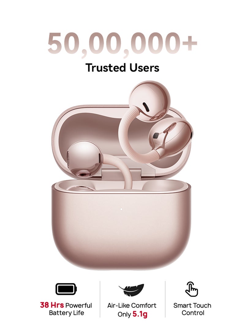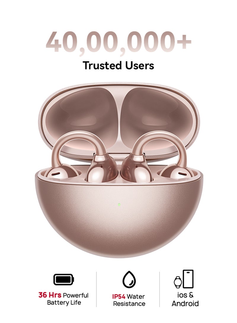 FreeClip, Groundbreaking Aesthetic Design, Feather-light Wearing, Open-ear Listening, AI Crystal-Clear Call, Long Battery Life, Dual-Device Connections Rose Gold