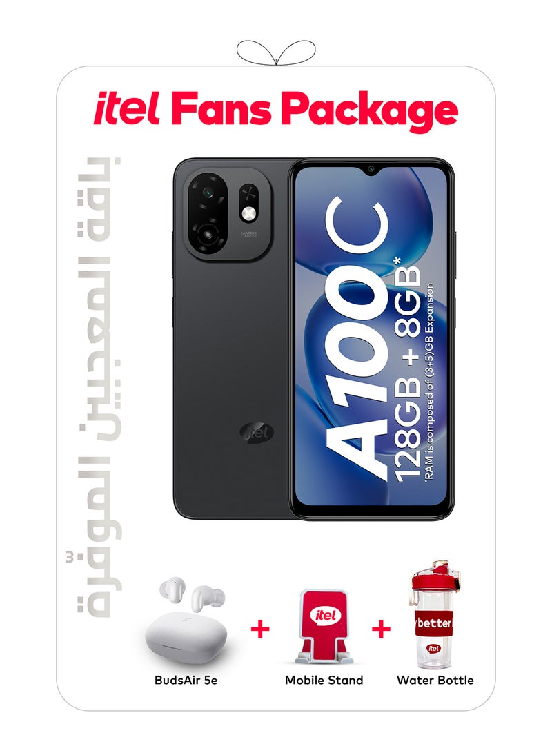 A100c Dual SIM Pure Black 3+5GB RAM 128 GB 4G - Middle East Version With Itel Fan Bundle buds Air 5e