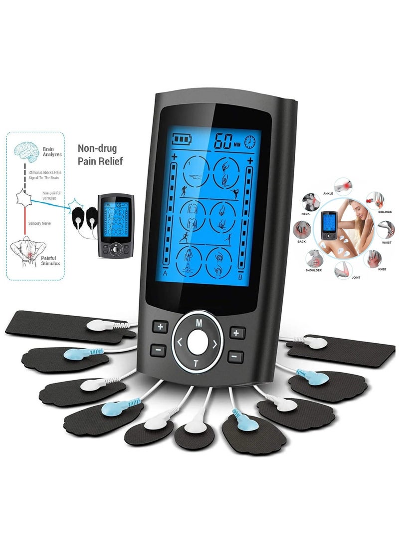 Dual Channel TENS EMS MASS Unit 36 Modes Muscle Stimulator for Pain Relief Therapy, Electronic Pulse Massager Muscle Massager with 10 Pads, Dust-Proof Drawstring Storage Bag, Fastening Cable Ties