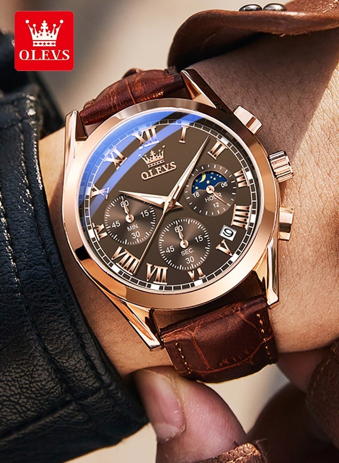 Watches for Men Chronograph Quartz Watches Leather Strap Date Waterproof Wrist Watch Luminous Watches for Men Fashion