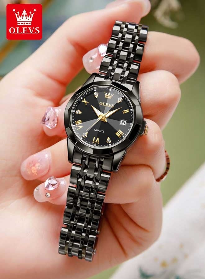 OLEVS Fashion Women's Quartz Watch Stainless Steel Water Resistant Analog Large Easy-to-Read Date Business Ladies Quartz Watch Gold Black