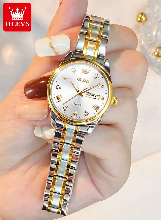 OLEVS Fashion Women's Quartz Watch Stainless Steel Water Resistant Analog Large Easy-to-Read Date Business Ladies Quartz Watch Gold White