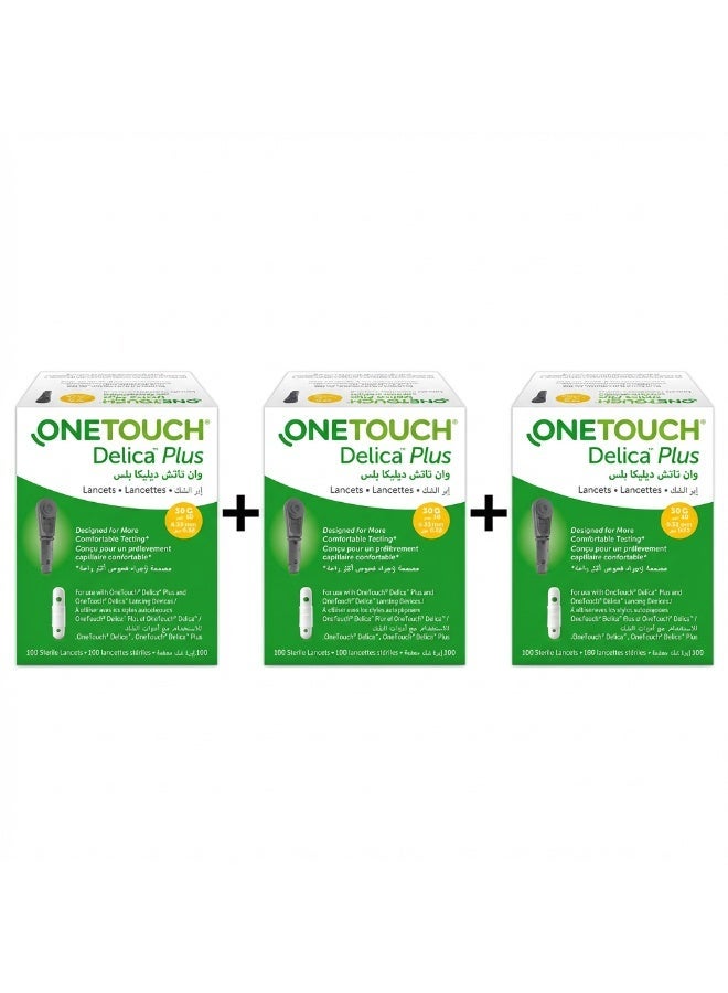 3 boxes of One Touch Delica Plus sterile needles for pricking, 100 needles each