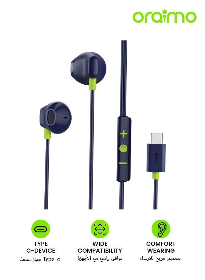 OEP-650 USB-C Wired In-Ear Headphones and Earbuds with Mic and Inline Remote For Hands-Free Calls Noise Cancelling Headset for iPhone Type C, iPad, Samsung Type C - Blue Blue