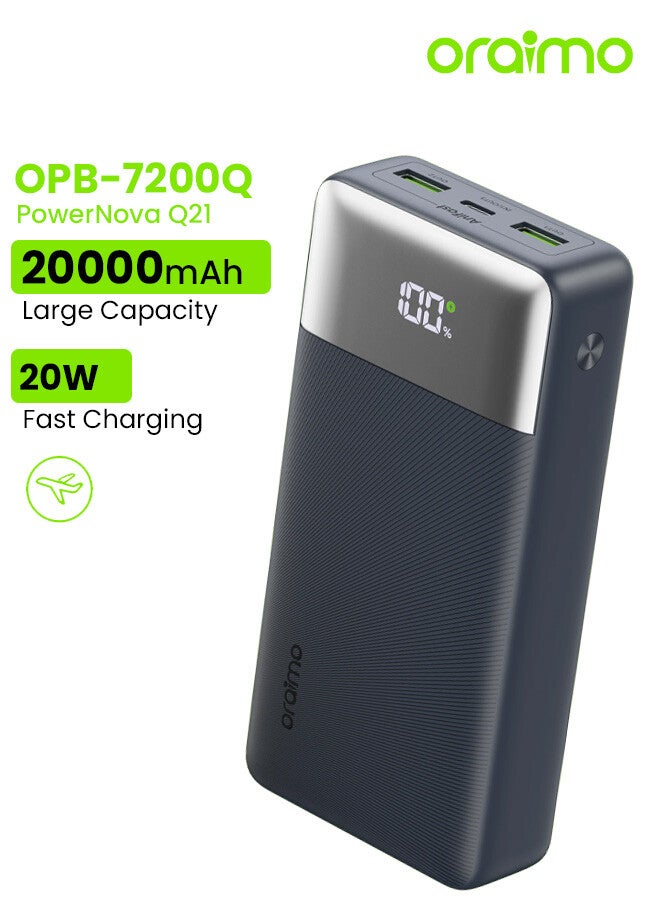 20000mAh Large Capacity Power Bank Portable Charger – 20W Two-Way Wired USB-C and USB-A ports. Fasting Recharging Simultaneous Charging for Smartphones, Tablets, Gaming Devices, Bluetooth & More – Compact, Travel-Friendly, Slim fit, LED Display for On-the-Go Power Anywhere - OPB-7200Q Black