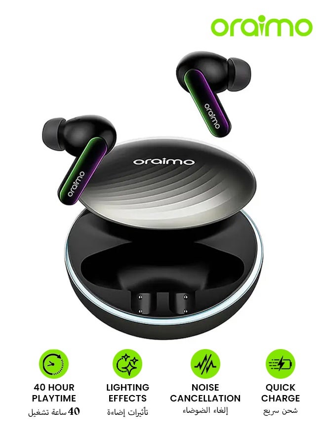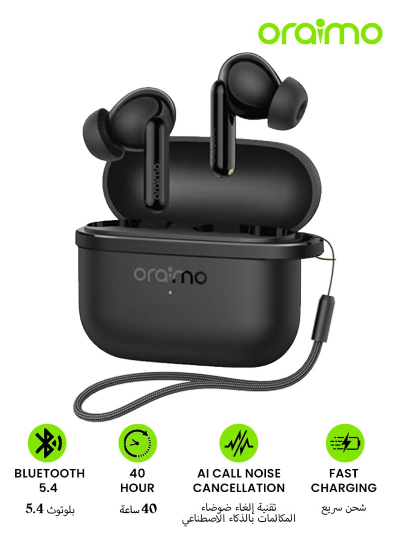 OTW-324 Bluetooth Earphones, 10mm Drivers with Big Bass True Wireless Earbuds, 40 Hour Playtime, Sound360, Noise Cancellation (ENC) for Calls, IPX4, 5.4 Bluetooth Headphones Black