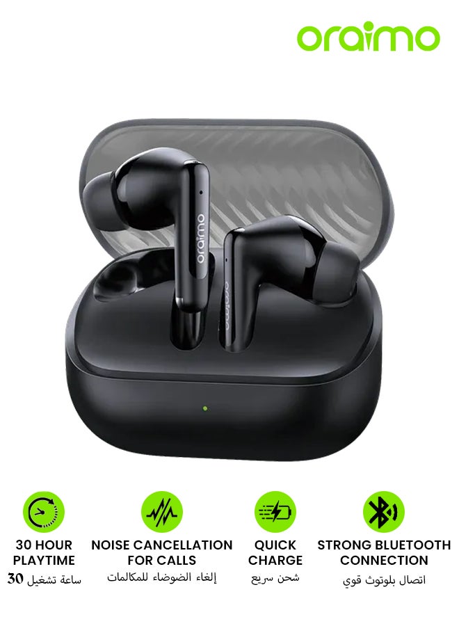 OTW-323 Bluetooth Earphones, 10mm Drivers with HavyBass True Wireless Earbuds, 5.4 Bluetooth Headphones, 30H Playtime, IPX5, 2-mic Noise Cancellation for Calls, Quick Charge - Black