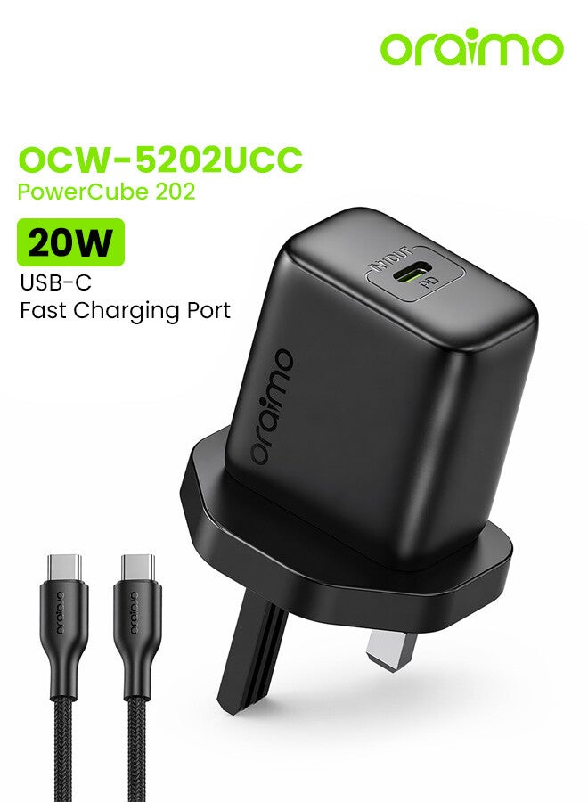 USB C iPhone Charger PD20W iPhone 16 Charger Head Type-C Power Plug with USB C Cable Wall Charger for iPhone series Galaxy - Black