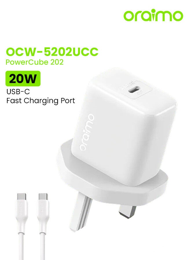 USB C iPhone Charger PD20W iPhone 16 Charger Head Type-C Power Plug with USB C Cable Wall Charger for iPhone series Galaxy - White