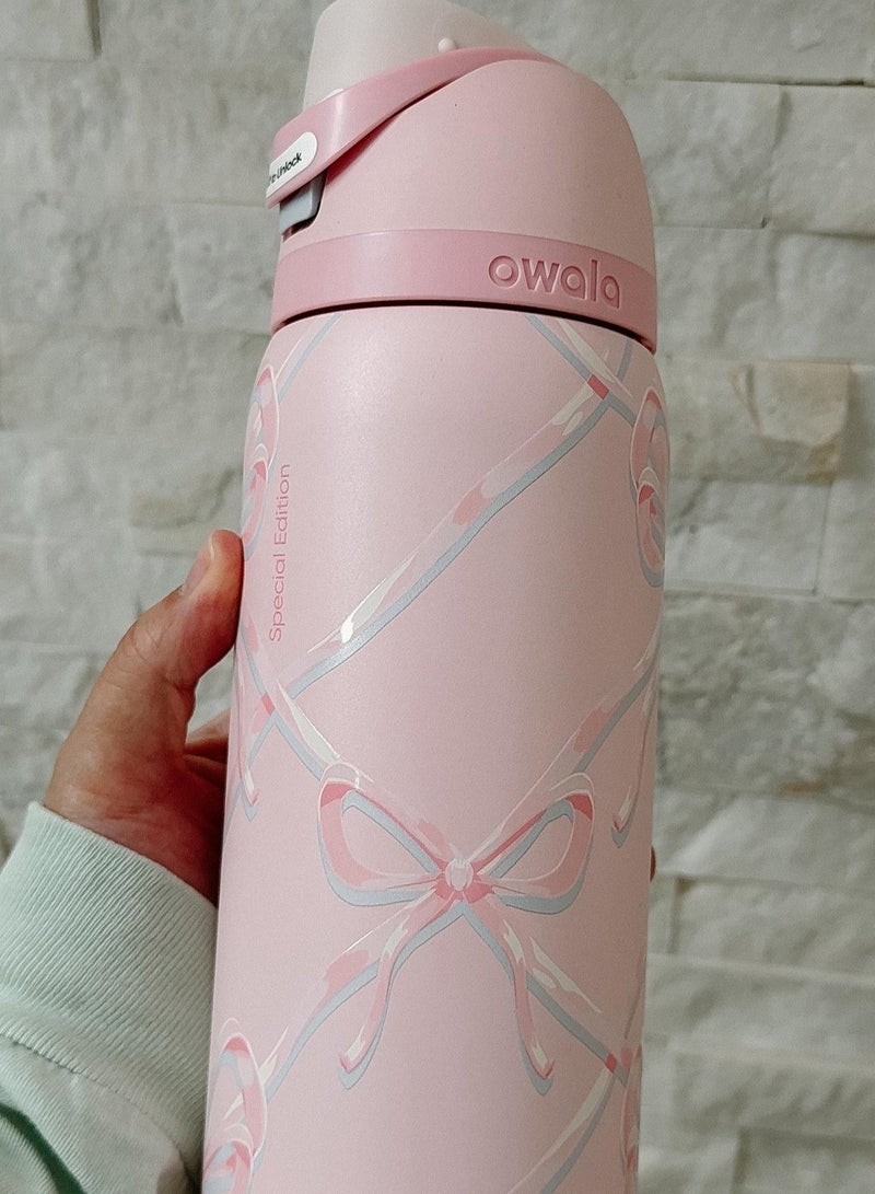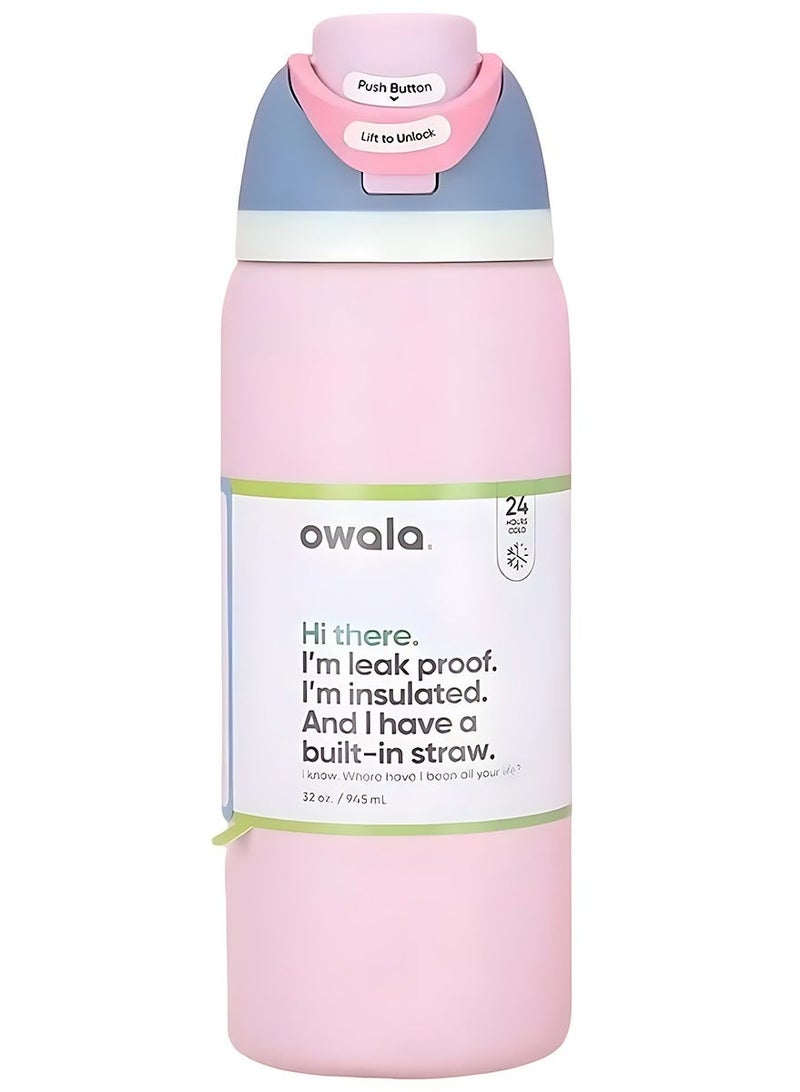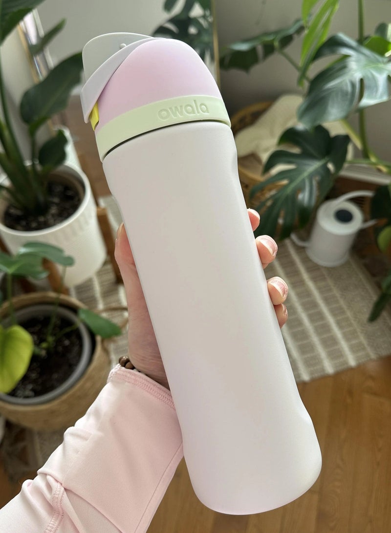Owala FreeSip Insulated Stainless Steel Water Bottle with Straw – Leak-proof, BPA-free, 32oz Iced Breeze, 1-Pack, Macaron Strawberry