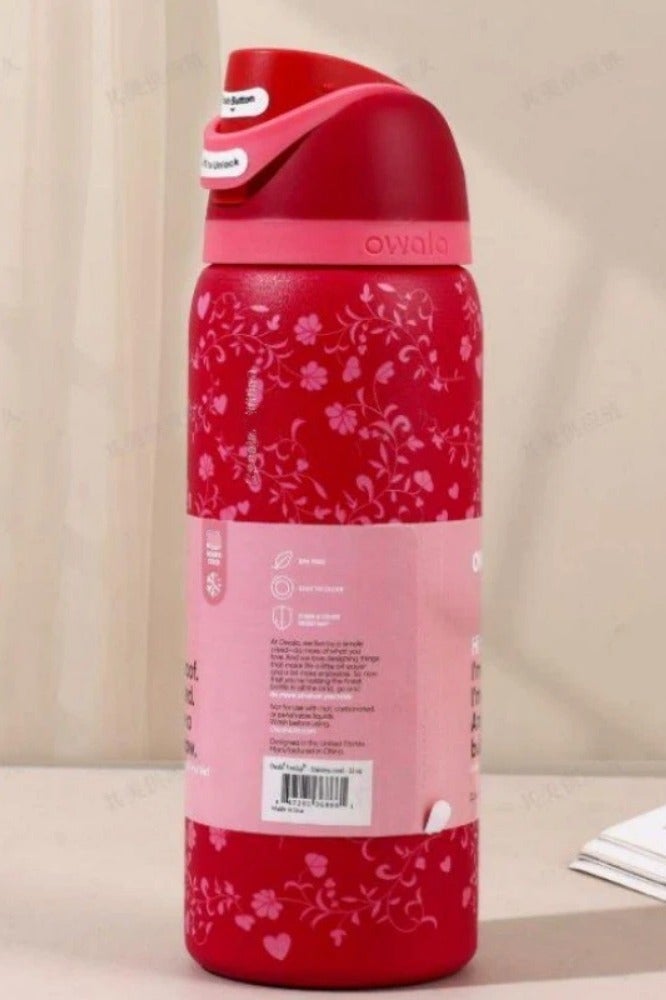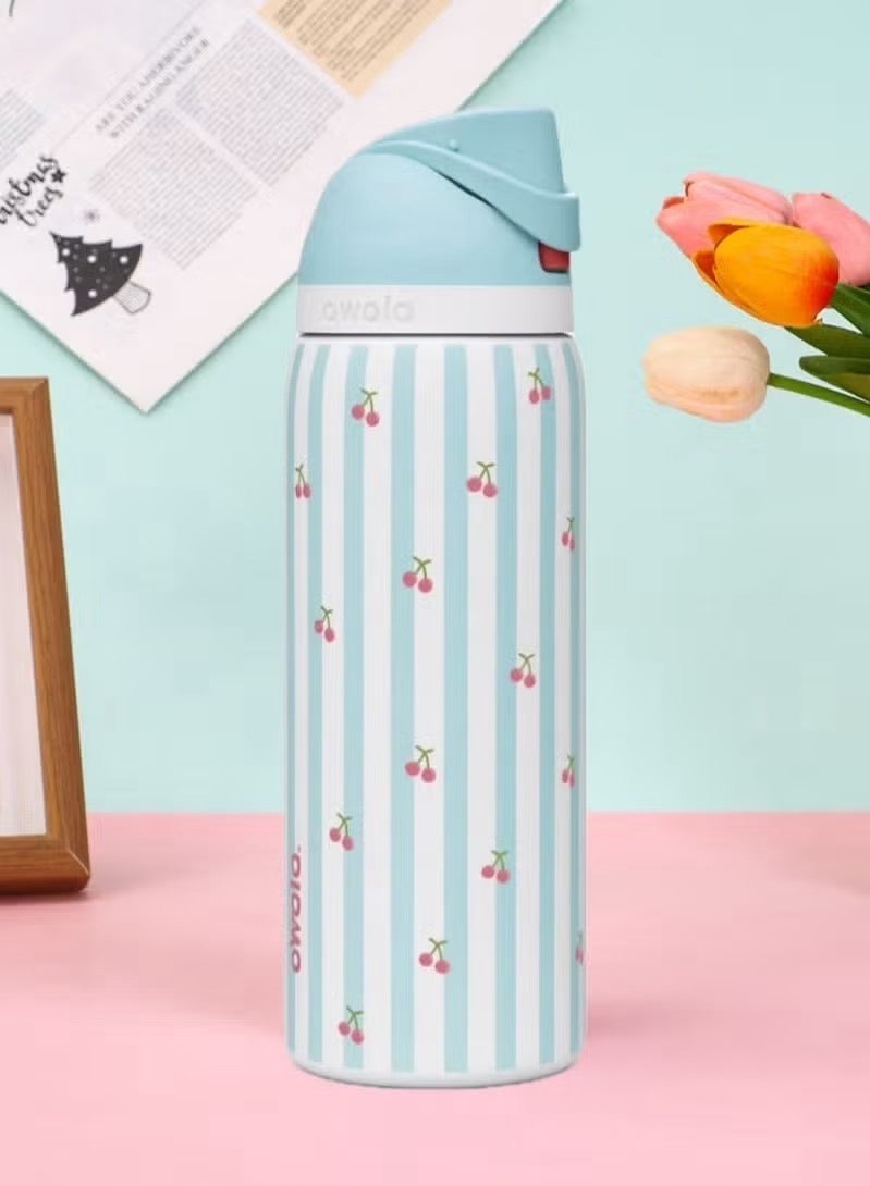 (Pillow Fight Cerises 24OZ)Freesip Insulated Stainless Steel Water Bottle With Straw For Sports And Travel, Bpa-Free, LIMITED EDITION Birthday Bash
