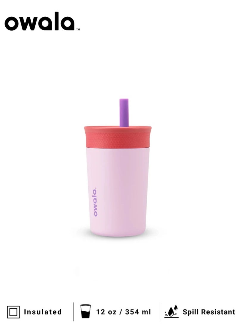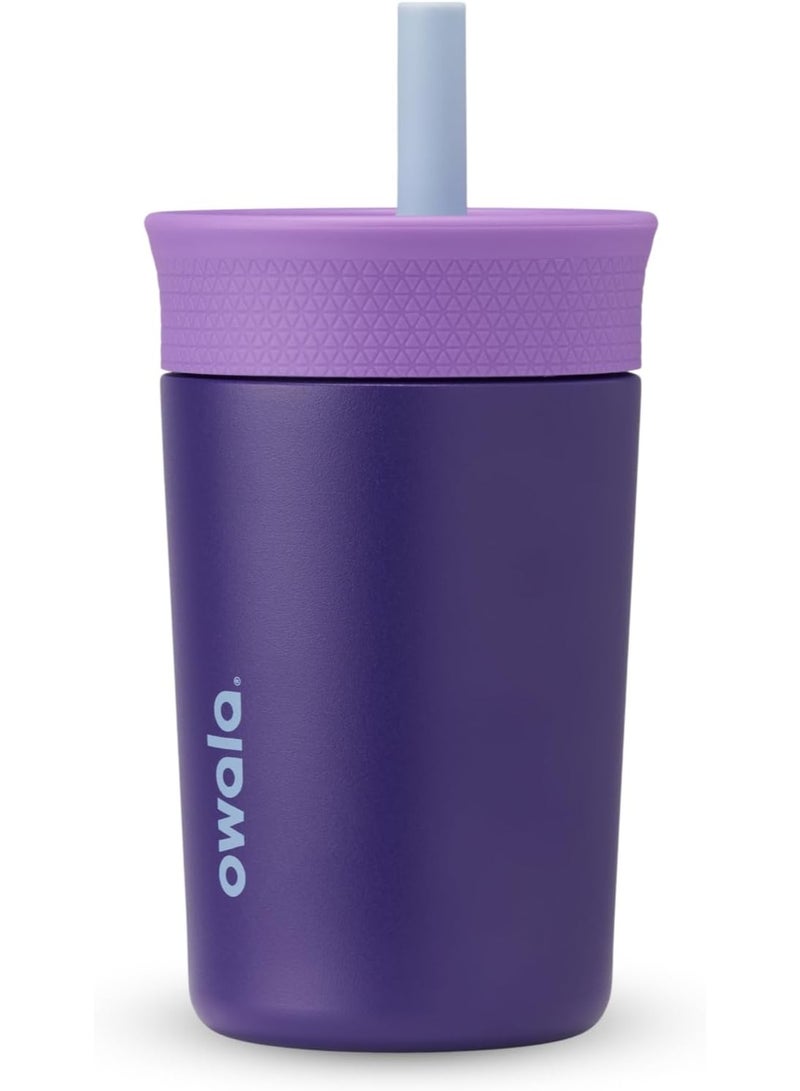 Owala Kids Insulated Stainless Steel Tumbler 12oz with Straw, Leakproof Silicone Sleeve Cup Portable Sport Water Bottle for Children (Purple)