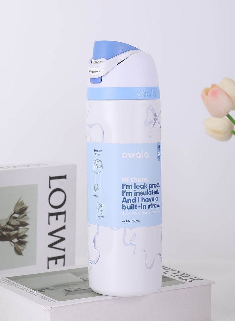 Original - Owala 24 oz BPA Free Insulated Stainless Steel Water Bottle with Free Sip Straw for Sports and Travel, Foggy Tide
