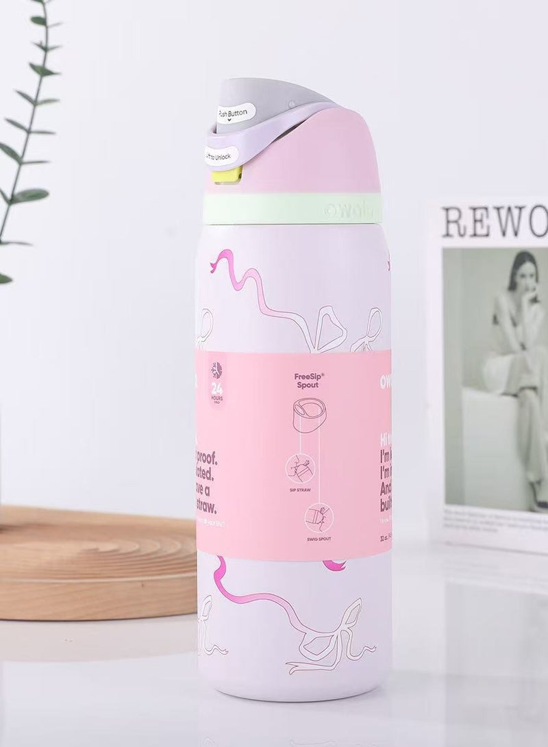 Freesip Insulated Stainless Steel Water Bottle With Straw For Sports And Travel, Bpa-Free, 32-Ounce,Pink Tie