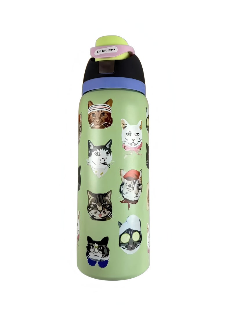 (Cat Collage 24OZ)Insulated Stainless Steel Water Bottle With Straw For Sports Travel And School BPA Free Sports Water Bottle
