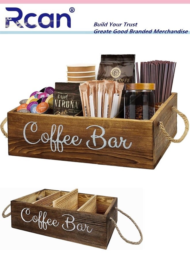 Coffee Station Organizer with Small Removable Dividers Wooden Coffee Bar Accessories Storage for Countertop Farmhouse Kcup Coffee Pod Holder Basket With Handle for Coffee Lover