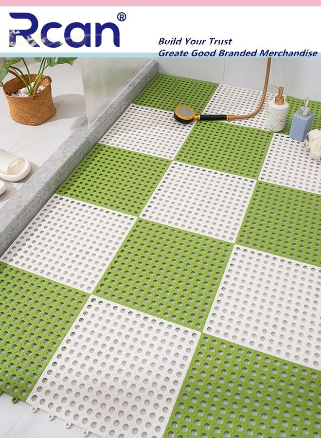 12 Pack Interlocking Non Slip Drainage Rubber Floor Tiles 30 x 30 cm Soft PVC Bath Shower Floor Mat Massage Soft Cushion Floor Tiles Drainage Holes for Bathroom Kitchen Pool Wet Areas