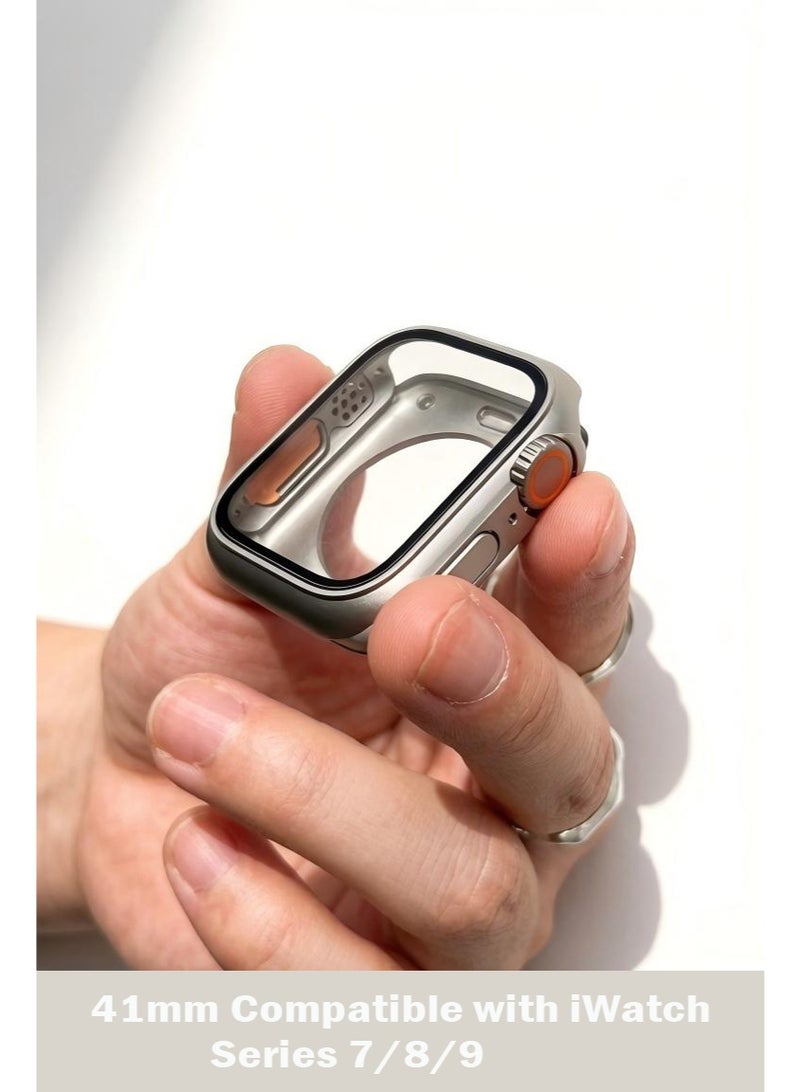 360° Full Protective Case for Smart Watch 41mm Compatible with iWatch Series 7/8/9 with Tempered Glass Screen Protector