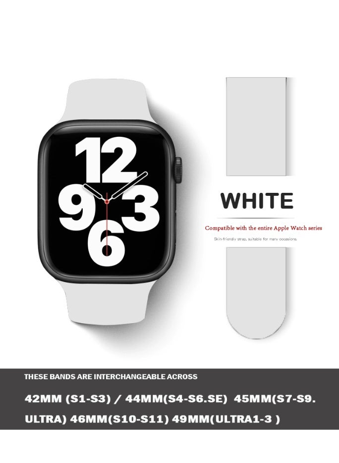 Apple Watchband 42MM/44MM/45MM/49MM Silicone Strap for Apple Watch All Series White