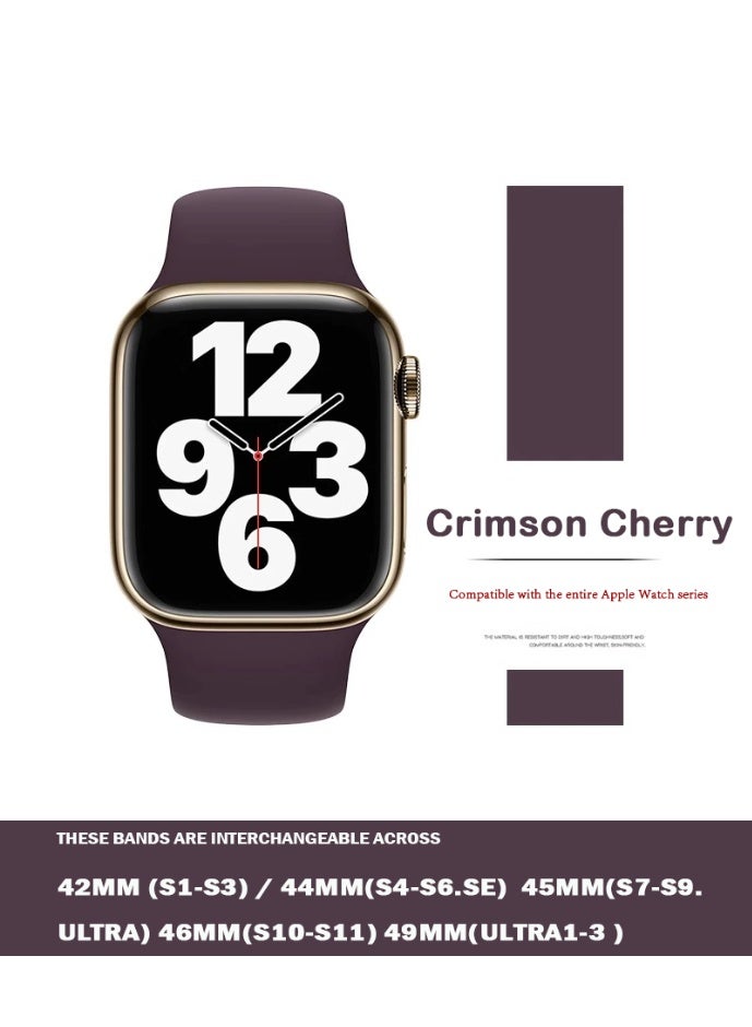 Apple Watchband 42MM/44MM/45MM/49MM Silicone Strap for Apple Watch All Series Crimson Cherry