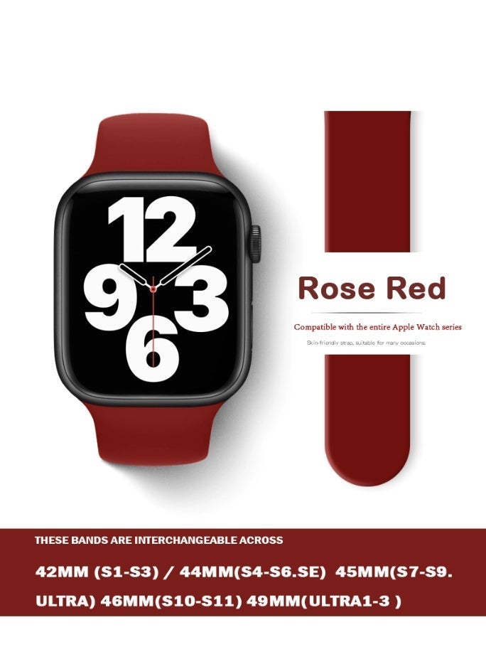 Apple Watchband 42MM/44MM/45MM/49MM Silicone Strap for Apple Watch All Series Rose Red
