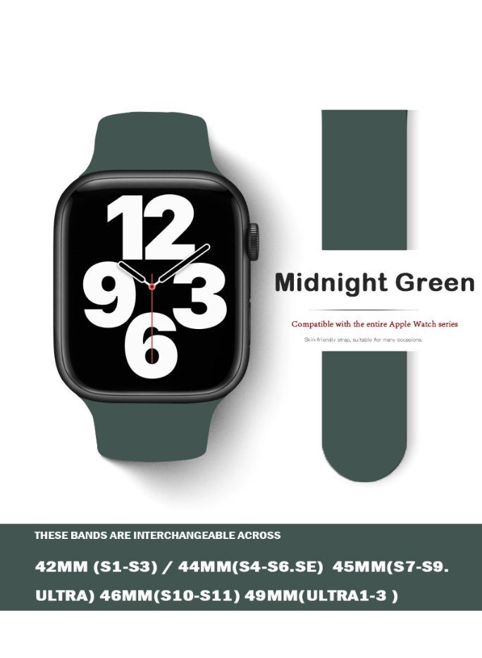 Apple Watchband 42MM/44MM/45MM/49MM Silicone Strap for Apple Watch All Series Midnight Green