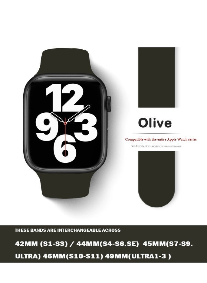 Apple Watchband 42MM/44MM/45MM/49MM Silicone Strap for Apple Watch All Series Olive