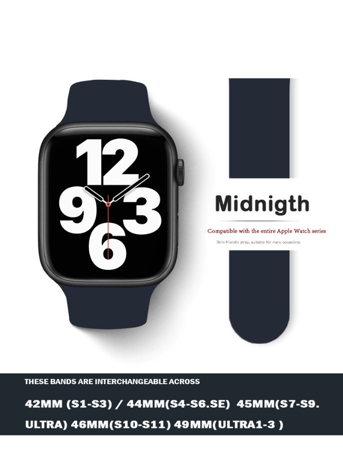 Apple Watchband 42MM/44MM/45MM/49MM Silicone Strap for Apple Watch All Series Midnigth