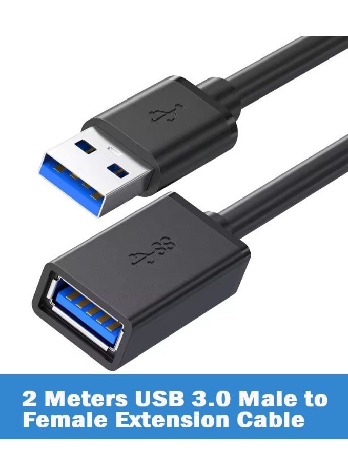 USB Extension Cable 2 Meters USB 3.0 Extender Cord Type A Male to Female Data Transfer Compatible for Playstation,VR,USB Flash Drive,Card Reader,Hard Drive Black